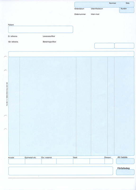Fakturablanketter till Alma TTS - programmet för Tandtekniker.